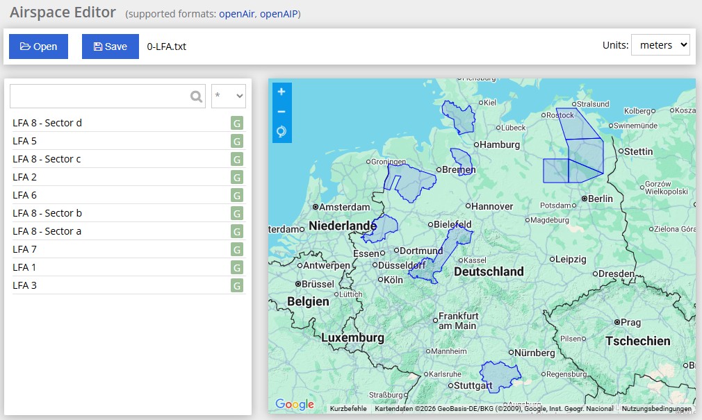 Diese Daten habe ich in das Open Air Format konvertiert als Lufträume G (unkontrollierter Luftraum).